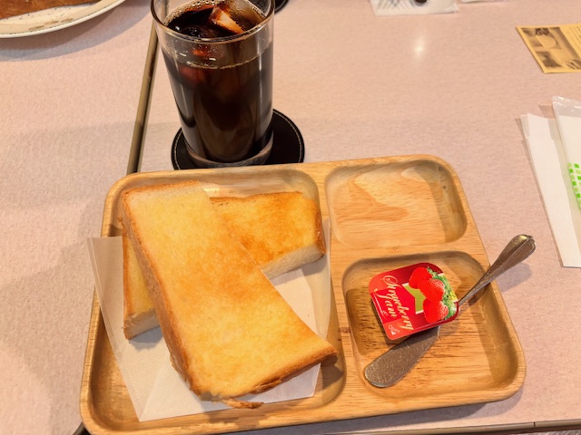 2026.01.29 東亜珈琲館で優雅な朝食を 皆様こんばんは。 クイーンズホテル千歳から歩いて5分、東亜珈琲館の本店がございます。 朝8時から営業している為、軽く朝食を済ませたい時に重宝します。 トーストとコーヒーがモーニングセットで用意されているのですが、トーストが厚切りふわふわさくさくで最高! ジャムトーストですが、焼いた後に軽くバターを塗ってくれているのでジャムを塗らずに食べても美味しいです。 朝少し時間に余裕がある際は、東亜珈琲館へ行ってみて下さい。